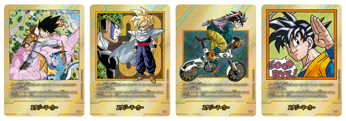 青の新規カードのパラレル版は、「ゴテンクス」「孫悟空」「孫悟天/トランクス:幼年期」「孫悟飯:青年期」。