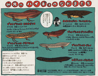 鳥山先生が描いたキュートなハイギョたちと、味のある手描きの解説がたまりません。