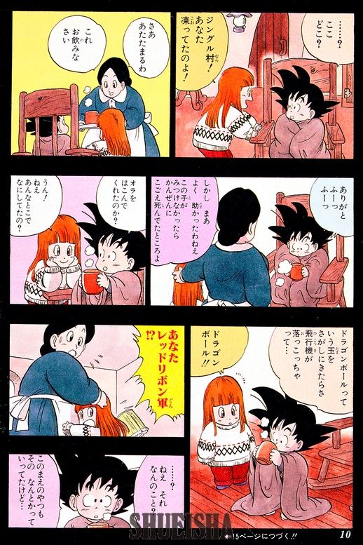 雪の中で凍えていた悟空を助けたスノの家でのエピソード。暖色が多く使われており、部屋の暖かさや優しい親子の温もりまで伝わってくる。