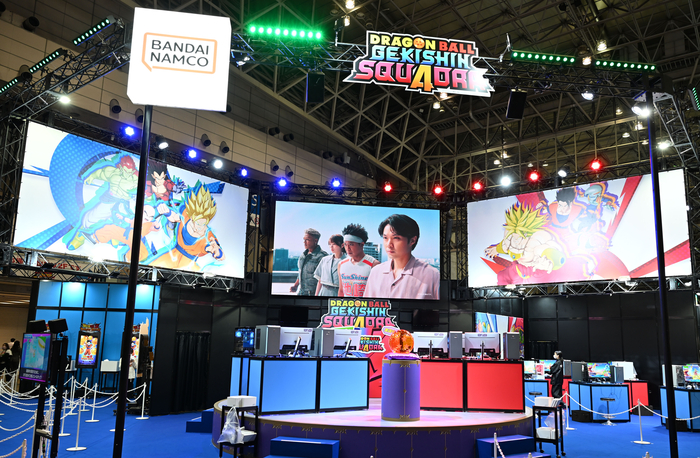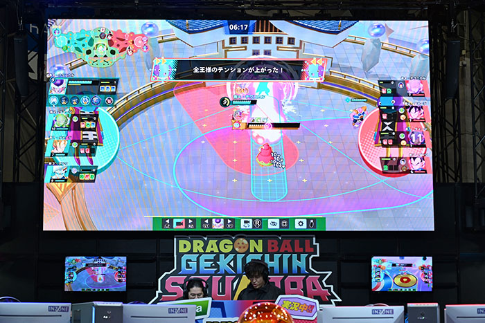 「ドラゴンボール」の最新ゲームプロジェクト「ドラゴンボール ゲキシン スクアドラ」の試遊エリアが登場! 大型モニターに来場者同士の対戦ゲーム画面をリアルタイムで映しての実況も交え、最新キャラクターの「伝説の超サイヤ人 ブロリー」の先行プレイと、4vs4の「超圧倒チームバトル」を臨場感たっぷりに楽しむことができました!!