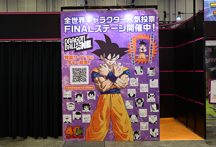 「最強Vジャンププレイランド」の隣には、「ドラゴンボール」初となる全世界人気投票「DRAGON BALL THE ONE」の特設コーナーが設けられ、Finalステージの投票画面を提示することで、会場限定のオリジナルステッカーがもらえました!!