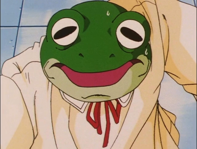 巨大なマーライコーに対し「こうなったらあの手でいくしかない」と、ゲコゲコと鳴き声を上げながら巨大化。