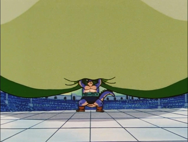 マーライコーを場外に押し出そうとしたが怪力で持ち上げられ、遠くに投げ飛ばされてしまった。