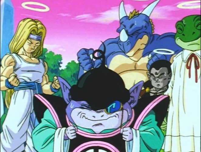 TVアニメ『ドラゴンボールZ』の280話では、マーライコーたちとともに大界王星で悟空と魔人ブウとの闘いを見守っていた。