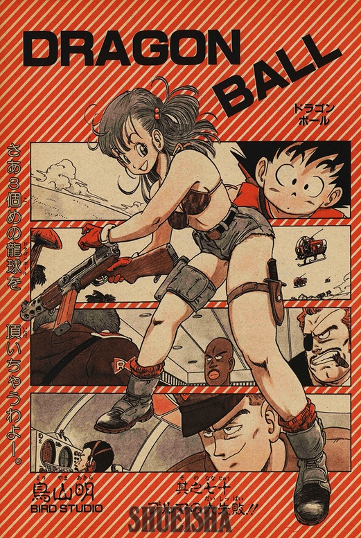 レッドリボン軍とのドラゴンボール争奪戦に巻き込まれ、臨戦体制のブルマ。物々しい装備を持ち前のセンスとキュートさで可愛らしくコーディネートしている。背景に鍵を握る人物たちの様子が描かれた、ストーリー性の高いデザインになっている。