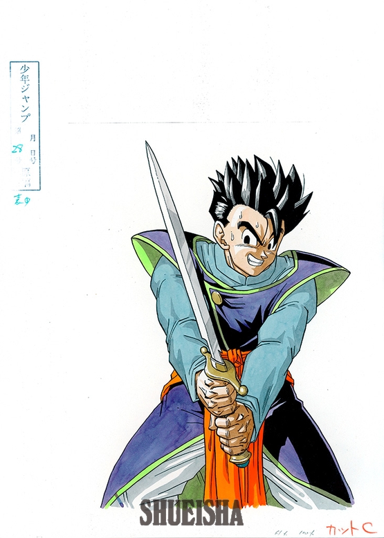 魔人ブウを倒すべく、界王神界で修業に励む悟飯の原画。この服装のカラーイラストは珍しく、実際の表紙とは微妙に違うありのままの色味も堪能することができる。