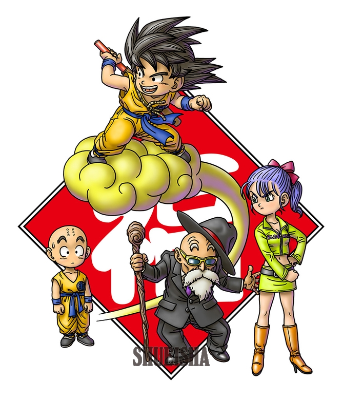 『ドラゴンボール』DVD1〜12巻、連続購入特典フィギュアの原画。このイラストを元にジオラマフィギュアが製作された。筋斗雲に乗った悟空、ブルマに怒られる亀仙人にキョトンとしたクリリン。初期の『ドラゴンボール』をデジタルで描いた、懐かしくも新しいイラストだ。