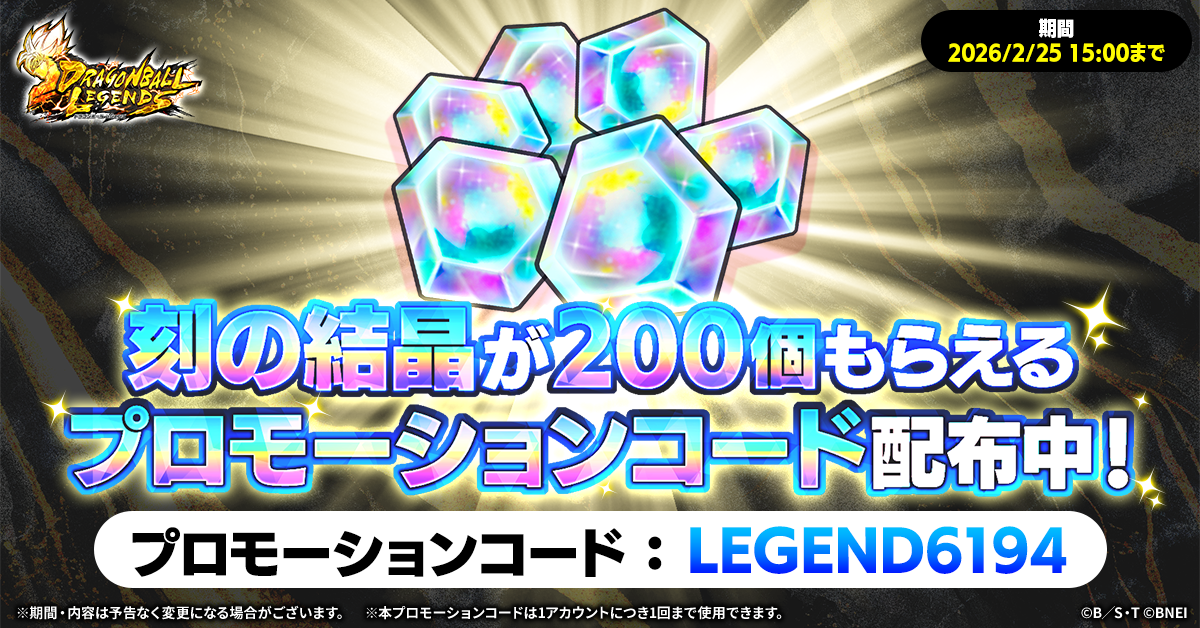 新レアリティ「LEGEND」の実装を記念して、刻の結晶が200個もらえる「プロモーションコード」を配布中!