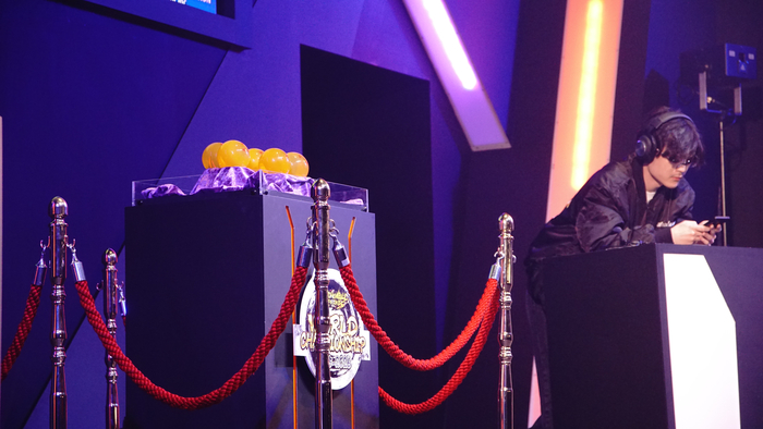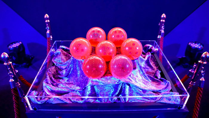 ワクワクしながら試合会場に入ると、ステージの上にはドラゴンボールが鎮座していました。こちらのドラゴンボールは、優勝者が獲得できる特注品の賞品です!