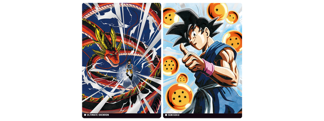 なんと、「超サイヤ人ゴッドSS孫悟空+超サイヤ人ゴッドSSベジータ」と「ゴクウブラック(超サイヤ人ロゼ)+ザマス」は、ゲーム内の仕様に合わせて初のリバーシブルデザインのカードとして登場!!