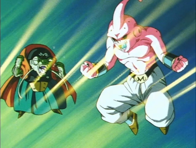 しかし、ブウが優しく温和な性格の大界王神を吸収したことで穏やかになる。