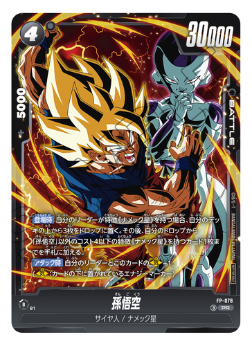 「ドラゴンボールスーパーカードゲーム フュージョンワールド」のふろくカードは、フリーザとの決戦に挑む「孫悟空」! 超サイヤ人に覚醒した際の、あの激しい怒りが伝わってくるような躍動感バツグンのイラストは必見だ!! 現在発売中のスタートデッキEX「気の躍動 [FS12]」と相性ピッタリの1枚になっているから、さっそくデッキを強化してみよう!!