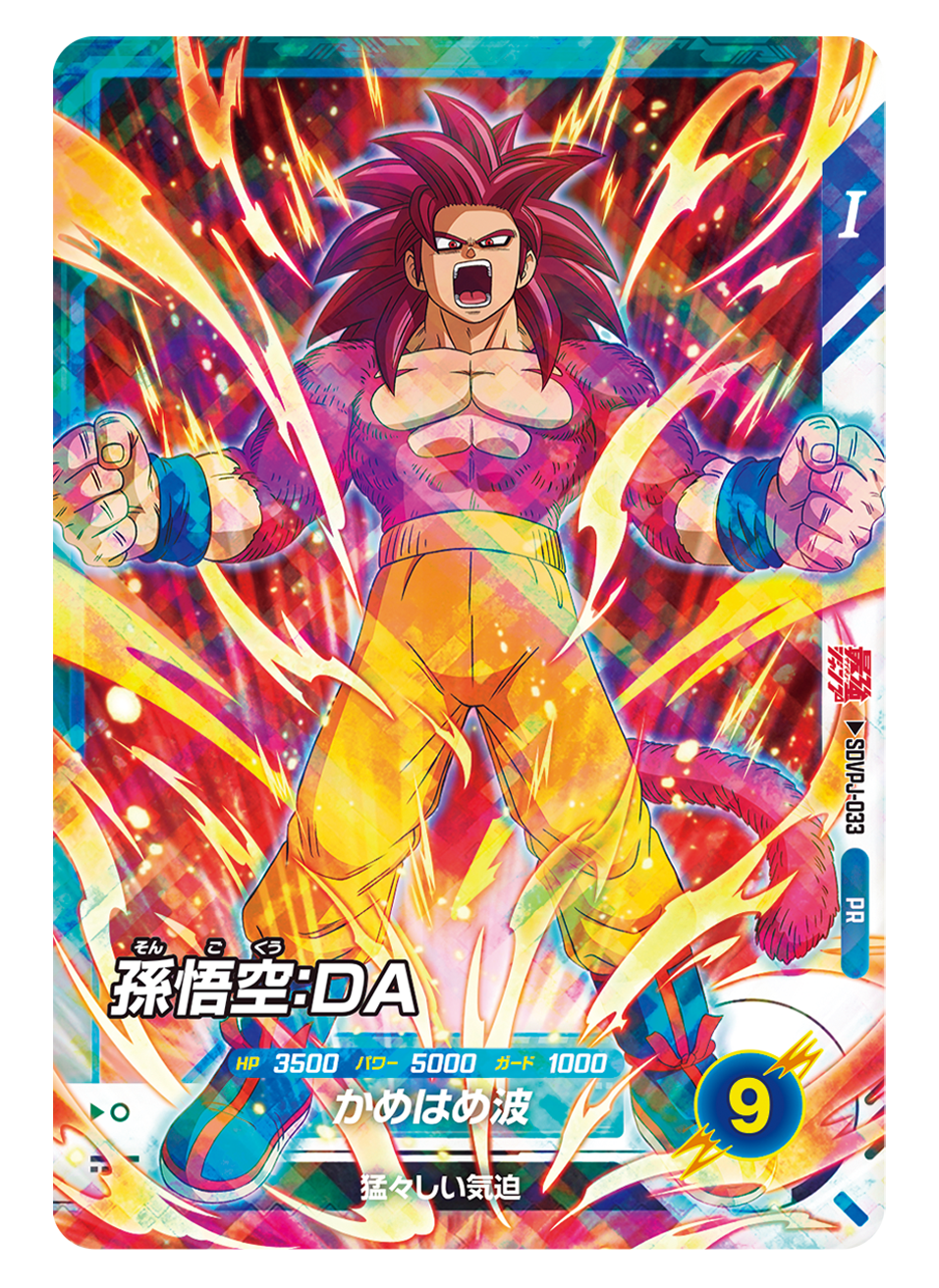 「ドラゴンボールスーパーダイバーズ」のふろくカードは「孫悟空:DA」! ジャイアントゴマーとのクライマックスバトルで見せた、超サイヤ人4の姿で登場だ!! 気合全開の悟空のイラストは、見ているだけでこちらのテンションも上がりそう!