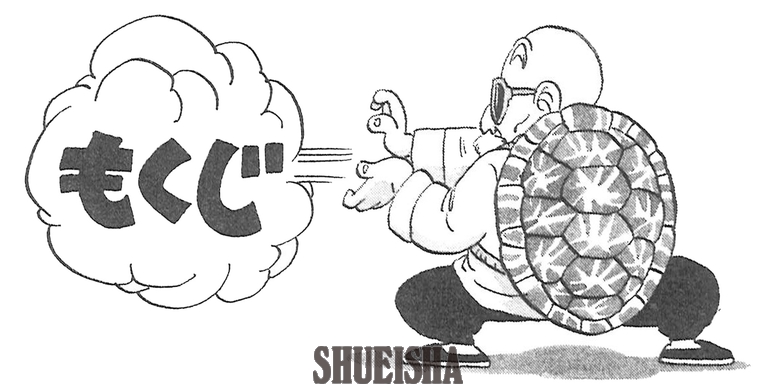 もくじの上に描かれたタイトルイラスト。亀仙人が軽快にかめはめ波を放ち、効果音のように「もくじ」の文字が飛び出している。横長のスペースを巧妙に使った、遊び心あふれるイラストだ。