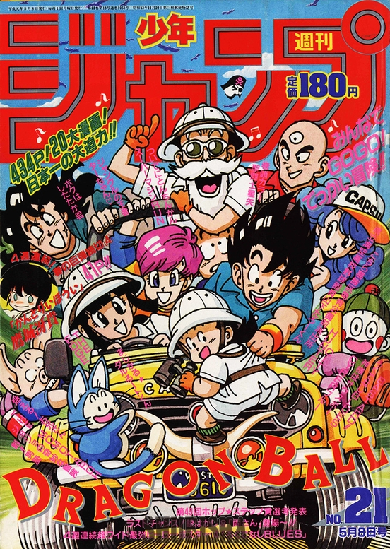 「みんなでGOGO! でっかい冒険!!」のキャッチコピーで、探検スタイルで冒険に向かう悟空たちが登場! 誌面ではナッパとの死闘の真っ只中だったため、すでに命を落としたヤムチャや天津飯、餃子の姿が元気をくれた。
