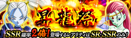 「昇龍祭」ではSR・SSRキャラクターのみ登場!! また、今回の「昇龍祭」は2体の新SSRキャラクター【第11宇宙の天使】マルカリータと【得意の色じかけ】キャウェイが登場!! ドッカン覚醒にも大注目だ!!
