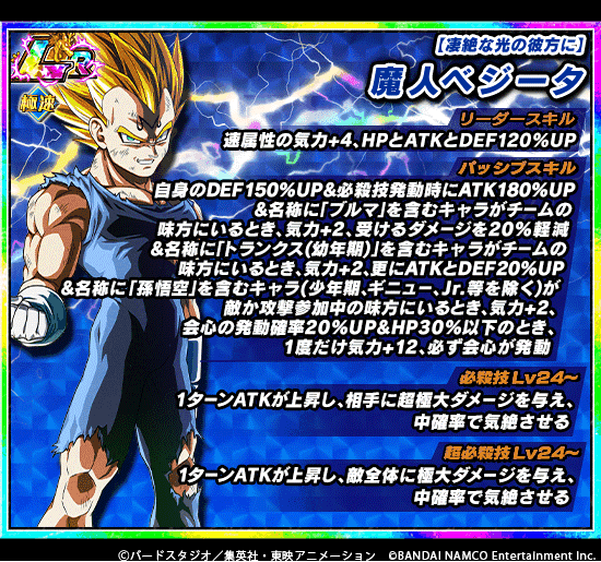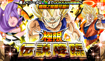 「極限伝説降臨」開催! ピックアップSSRキャラクターの【みつけられた邪心】魔人ベジータはLRまでドッカン覚醒可能! さらにLRへのドッカン覚醒後、最大Lvまで育成することで極限Z覚醒が可能になるぞ‼