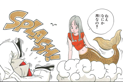 美女の正体は人魚。ボディタッチをしようとする亀仙人に激怒して、海へと帰っていった。