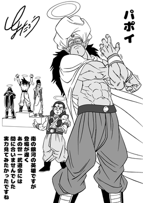 マンガ『ドラゴンボール』に登場した南の界王が、天下一武道会に向けて修業する悟空のに対して、パポイは「すげー強いヤツ」だと話していました。