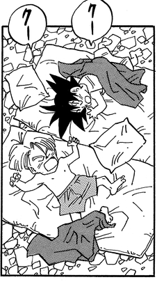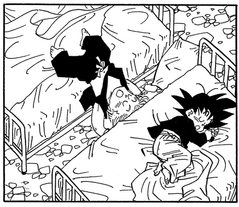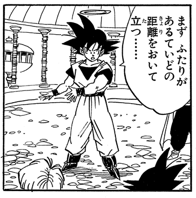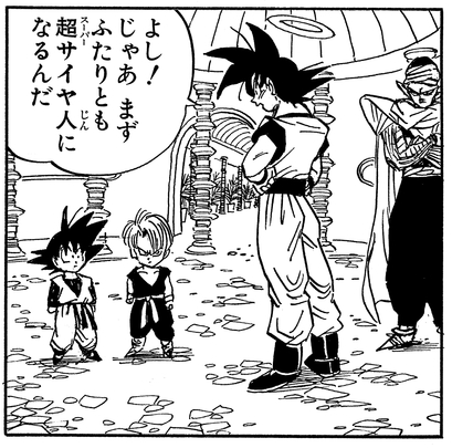では、上の階を見てみましょう。先ほどの場所と似ていますが、こちらには壁がありません。悟天&トランクスの修業は、悟空VS魔人ブウの闘いを挟んで上の階に移動していたようです。