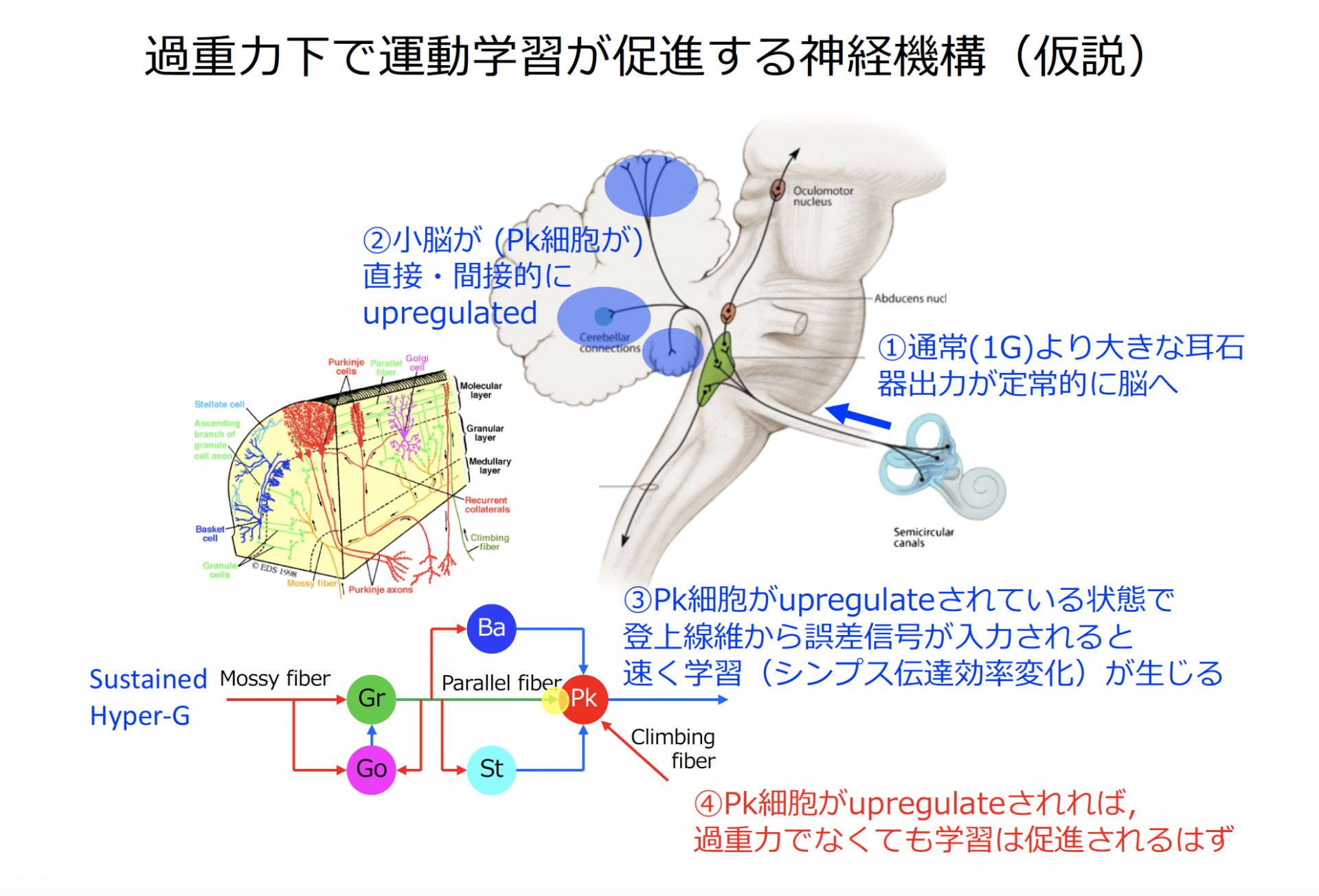 強い重力をかけると運動学習の効果が上がる。その際に脳内で起こっていることを、詳しく教えてください。