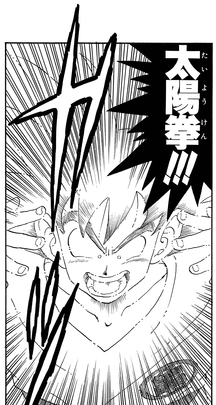 まばゆい閃光を放って相手の目をくらませる、天津飯の技。四身の拳で4人になった天津飯の動きをまとめて封じた。
