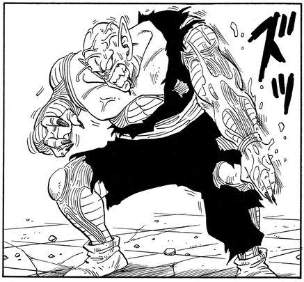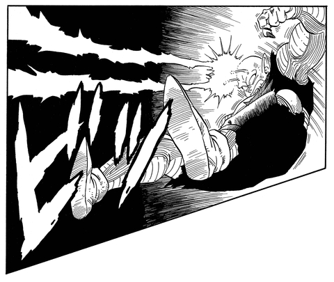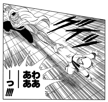すばやい動きで残像を残し、相手を撹乱する技。クリリンのかめはめ波を至近距離で受けたかに見せかけ、背後に回り込んだ。