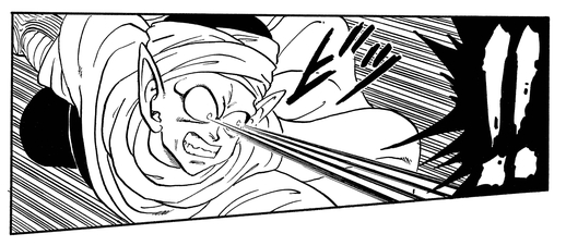 悟空に追い詰められたピッコロが、最後の賭けとして出した大技。腕を組む姿勢で溜めたものすごい気を、一気に放出する技。辺り一帯の人や建物を吹き飛ばす威力を持つ。