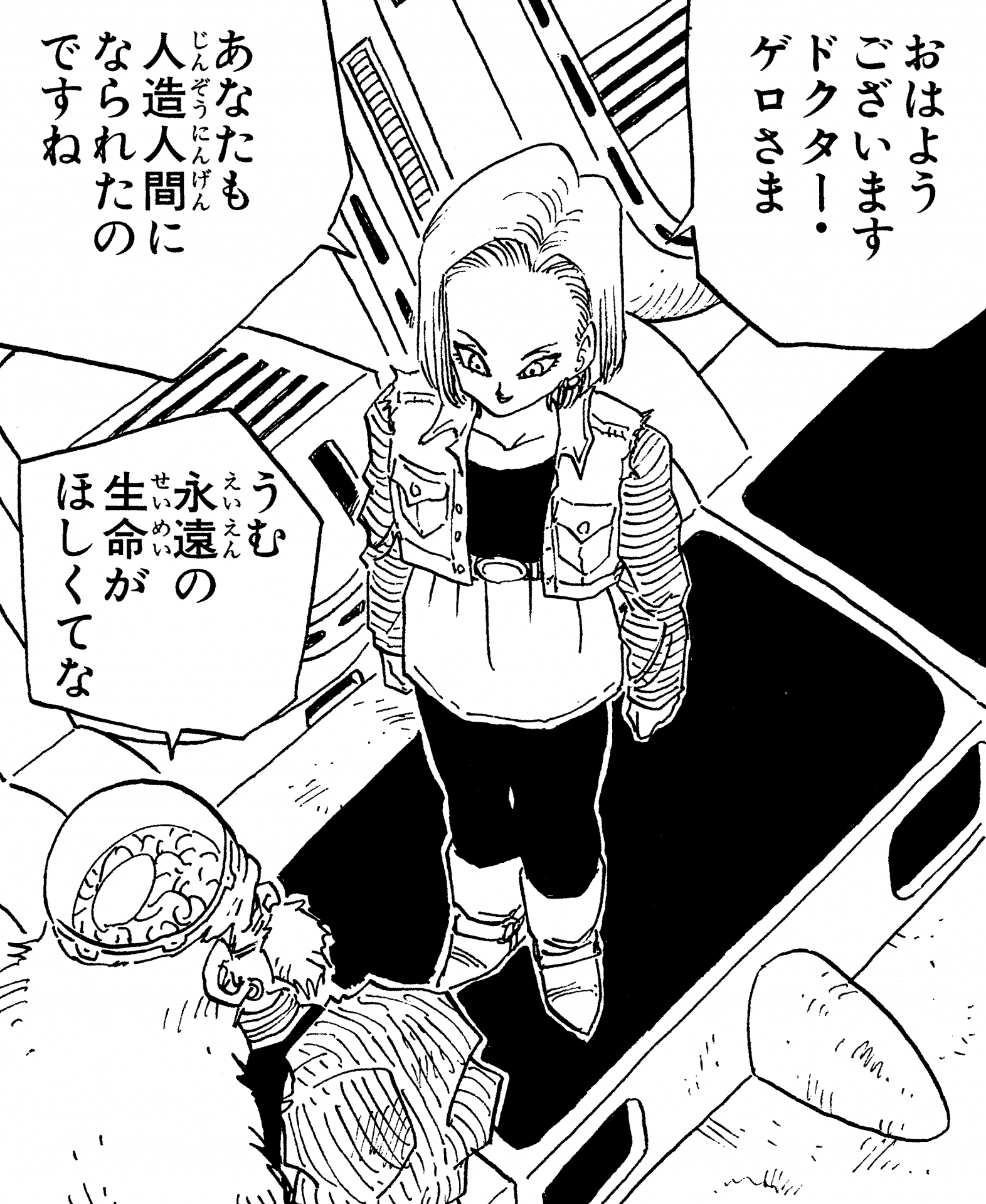 ちなみに、17号と18号のベースとなったふたりは、もとはふだつきの不良で、ドクター・ゲロが実験材料を探しているときに偶然出会い、さらわれて改造されてしまったそうです。