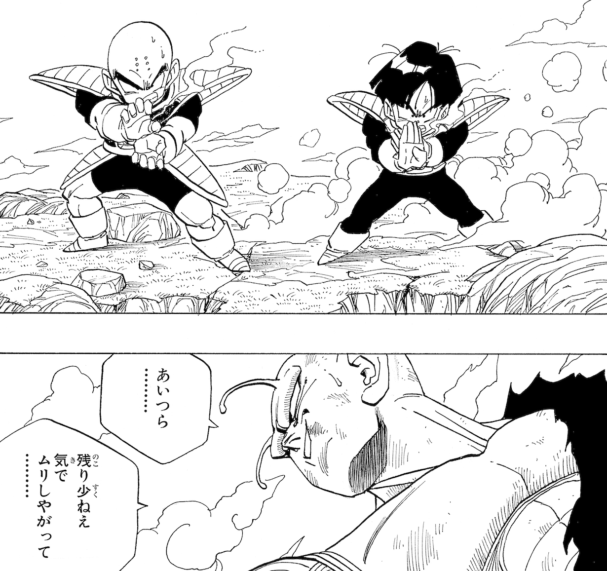 残り少ない体力で悟空をフォローするクリリンと悟飯