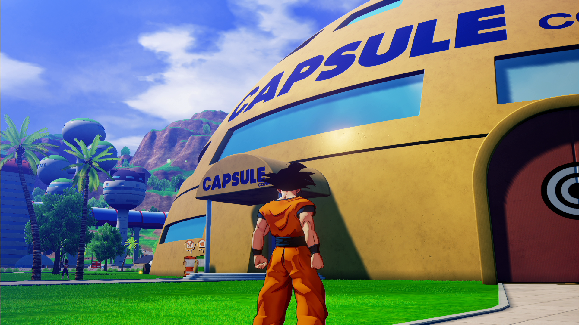 街の中でも特に存在感を放っているのが、ドーム型のカプセルコーポレーションだ。プレイヤーは建物の中に入って歩き回ることができる。ブルマの研究室も再現されているので、ぜひ散策してみよう!