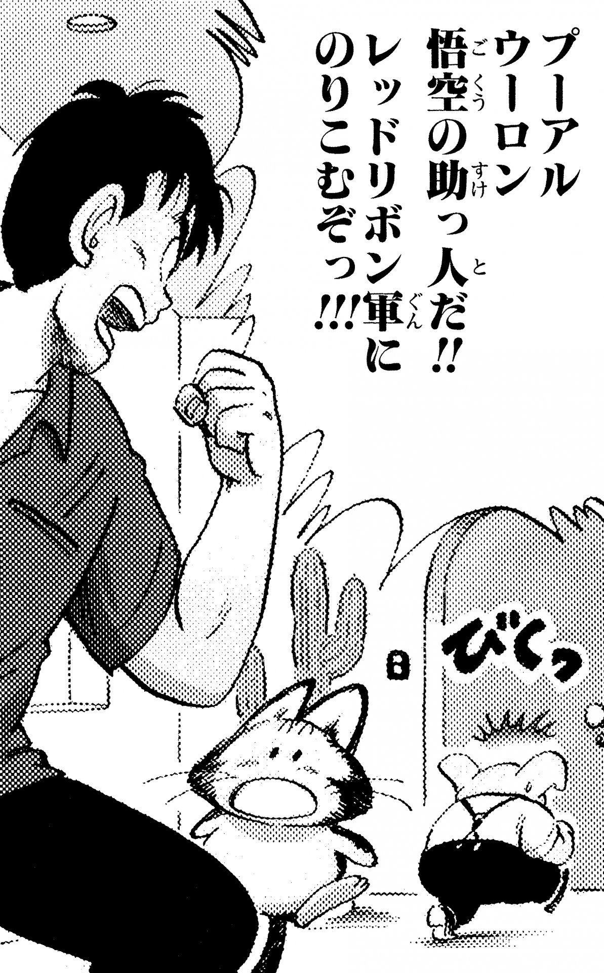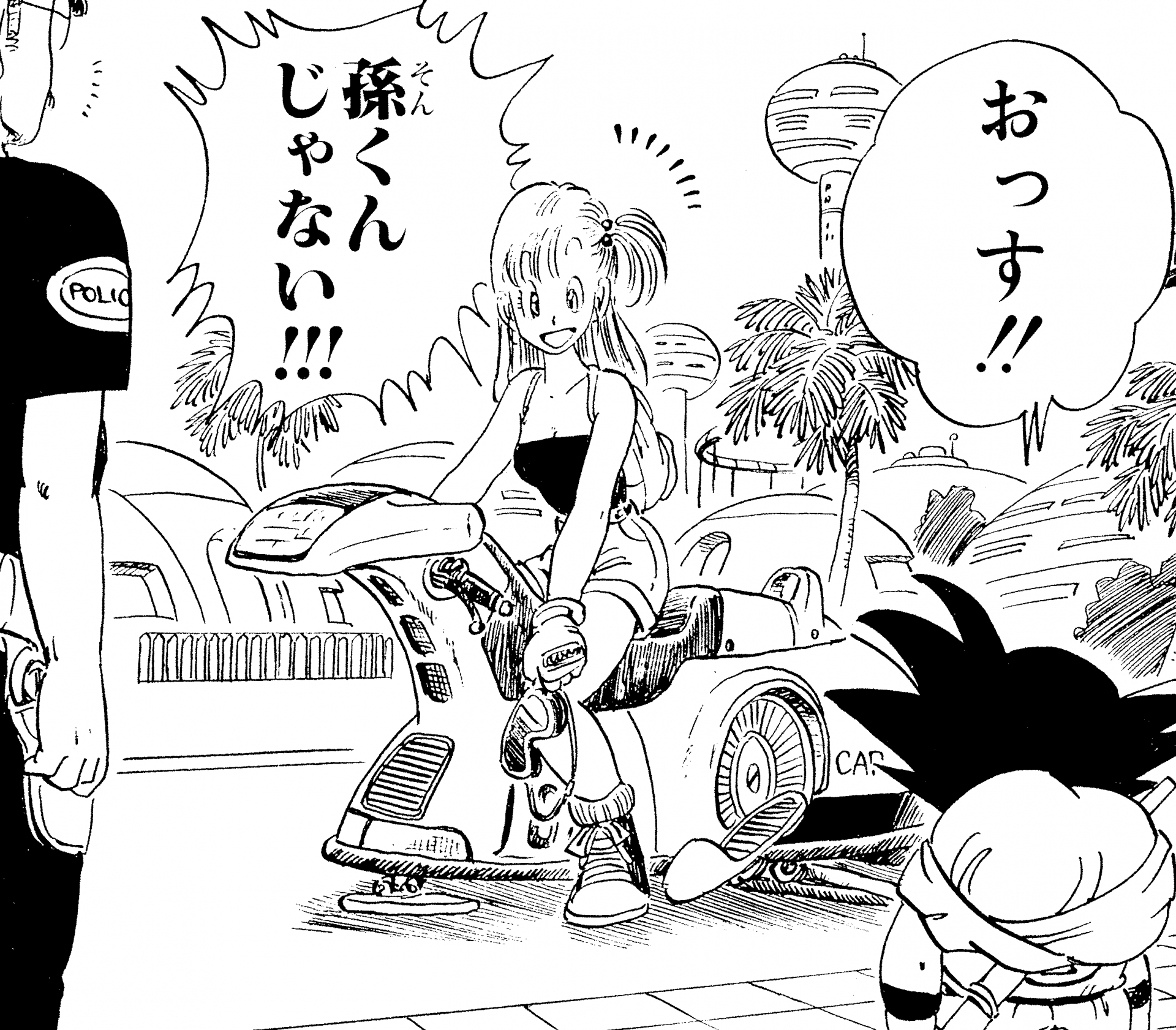 マイペースな性格で、まだ小さい悟空にお酒を勧めていました。恋バナが好きで、ブルマの恋愛事情にも興味津々なようです。