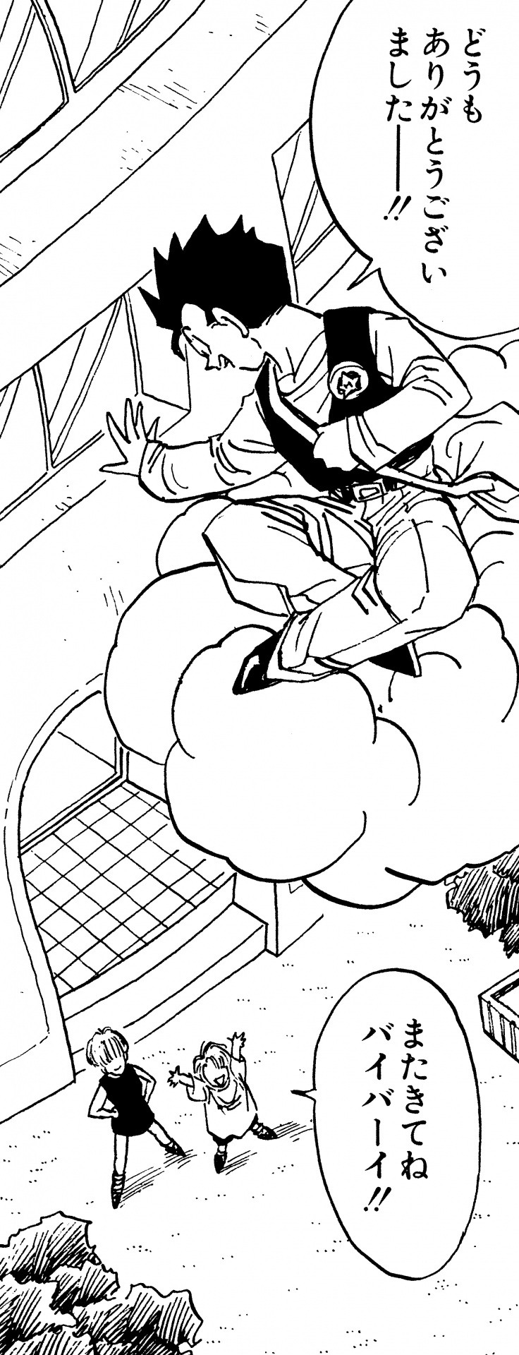 ベジータとの闘いのあと、悟空たちといっしょに西の都の病院に入院しました。また、高校生になってからは変身スーツをブルマにつくってもらうため、カプセルコーポレーションを訪ねています。