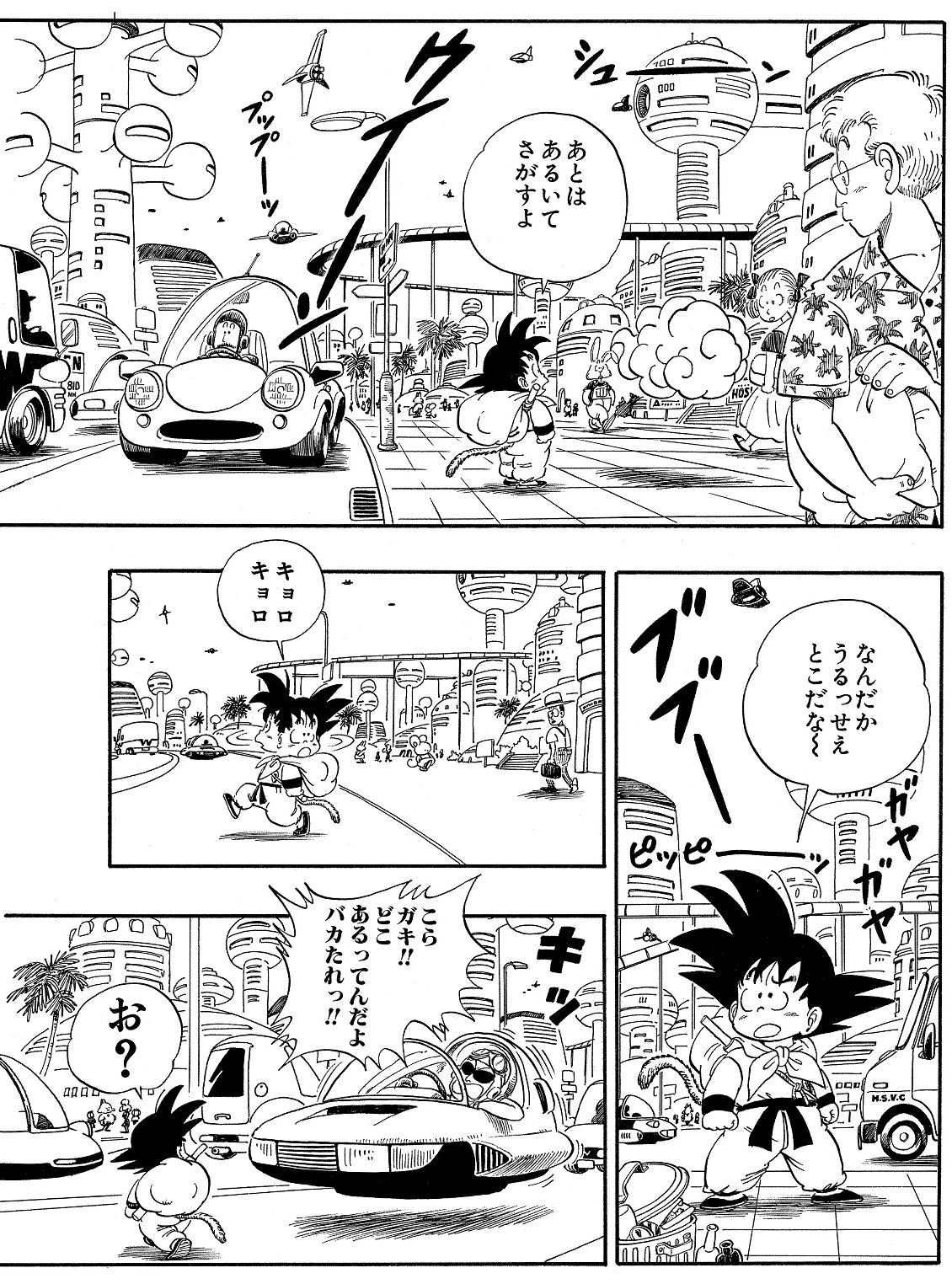 ーードラゴンボールの世界では、地上をタイヤで走る自動車に加えて、半重力装置による浮遊とジェットによる推進を組み合わせた空飛ぶ車「エアカー」などが存在しています。