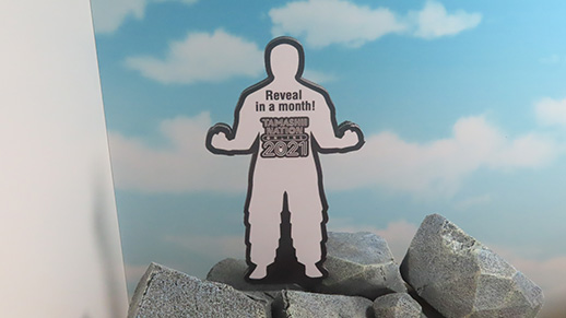 人型パネルに書いてある英語の意味は、「来月公開」! どうやらセル編に登場する誰かのようだ!