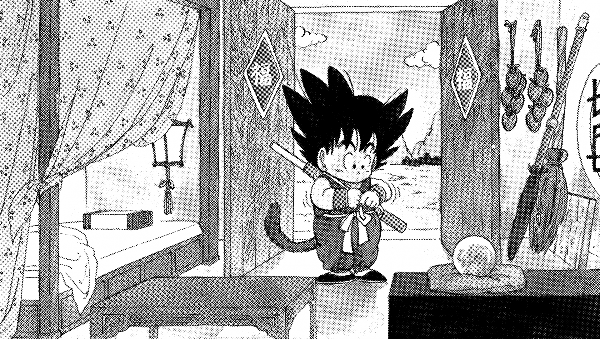 悟空の育ての親である孫悟飯の家です。人里離れた山奥に建てられています。部屋はひとつしかなく、ベッドとタンスが置かれた質素な家です。