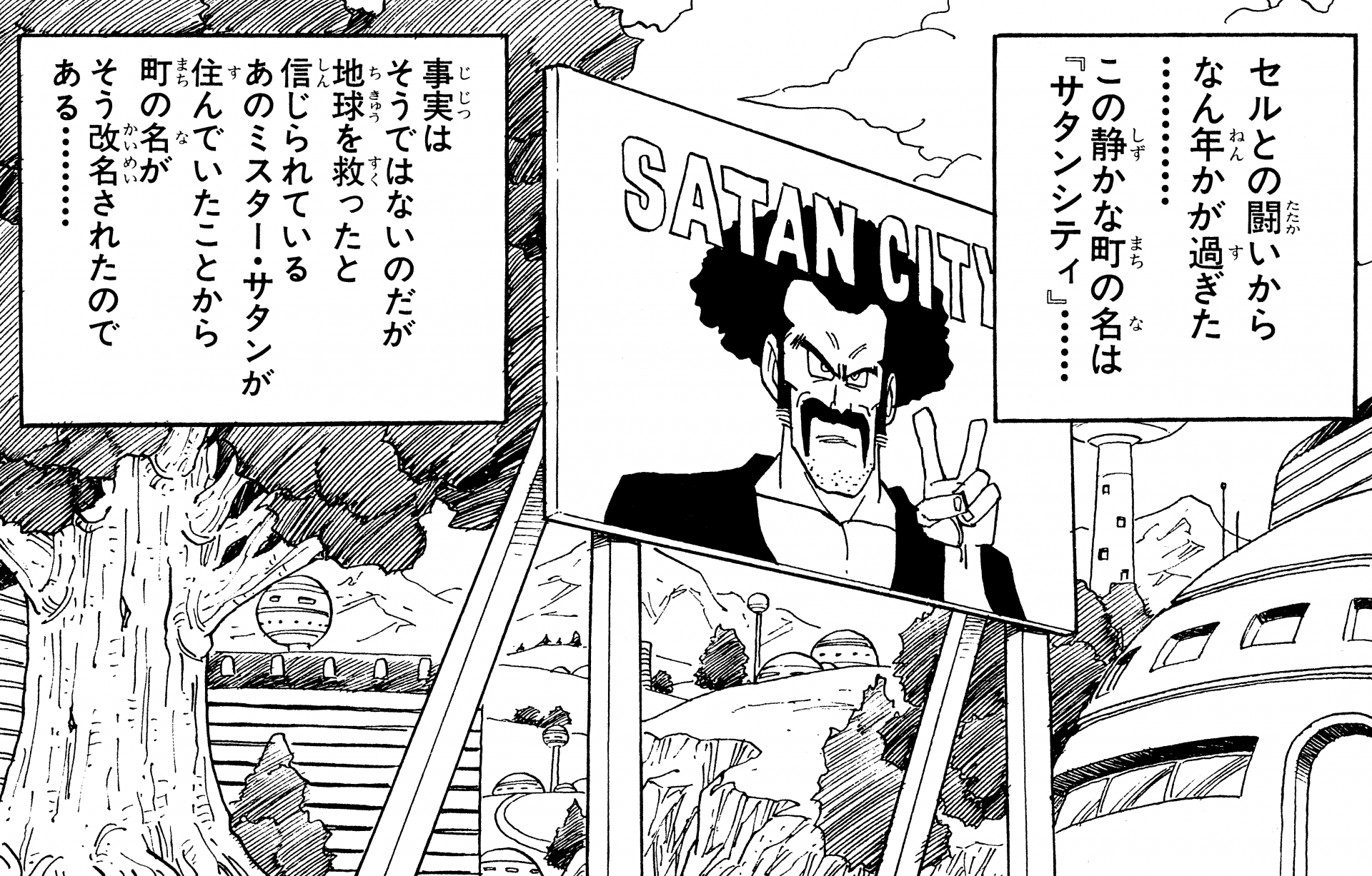 世界を救ったとされる英雄、ミスター・サタンにちなんで名付けられました。悟飯の通うオレンジスターハイスクールのある町です。