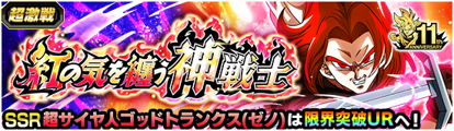 「紅の気を纏う神戦士」が開催中! コラボガシャに新しく登場した【タイムパトロール最後の希望】超サイヤ人ゴッドトランクス(ゼノ)らは本イベントで獲得できる覚醒メダルでドッカン覚醒が可能だ! 闇に立ち向かう紅き神戦士に勝利し、覚醒メダルをGETしよう!