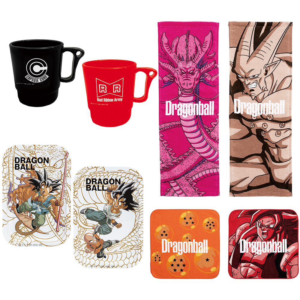 ドラゴンボール完全公式ガイド「LANDMARK」「FOREVER」の表紙などを使用したキャンパースタックマグや、「DRAGONBALL 大全集」の表紙絵をモチーフとしたメタルトレイ、歴代の「バトル・対」をコンセプトにしたタオルなどにも注目!