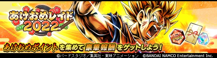 新年限定の特別ログインボーナスやスペシャルミッション、年越しスペシャルレイド「あけおめレイド 2022」でもらえる「ポチ袋」を集めよう! 「ポチ袋」を集めると、専用の交換所でLEGENDS LIMITEDキャラクターのZパワーや様々なアイテムと交換できるぞ!! 毎日プレイして2022年の幕開けにふさわしい豪華報酬を受け取ろう!
