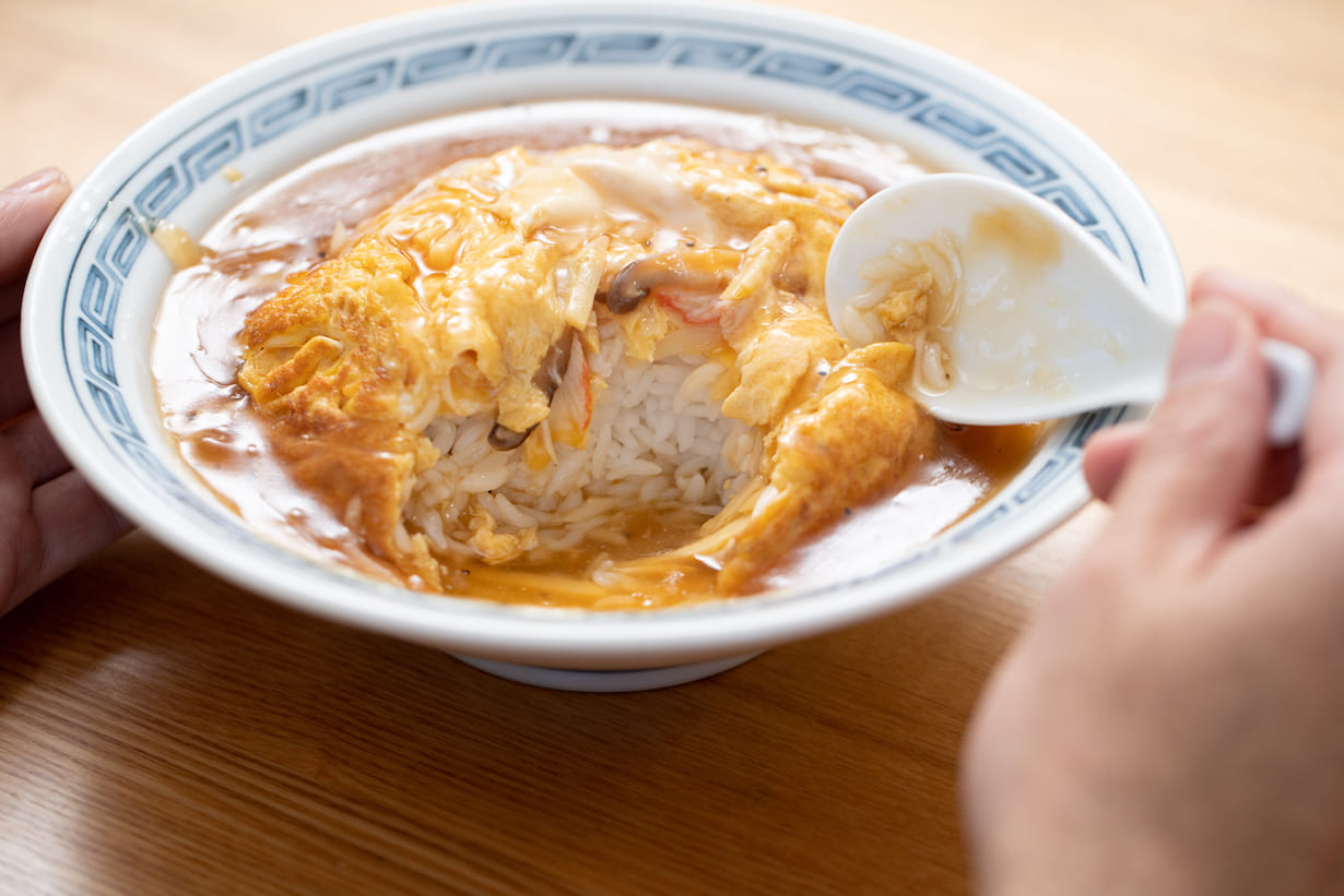 ちなみに、卵焼きを乗せた麺料理なら中国各地にあるのですが、ご飯に乗せて餡を掛けるという丼のようなスタイルは日本発祥のようです。