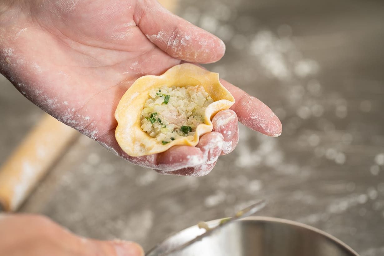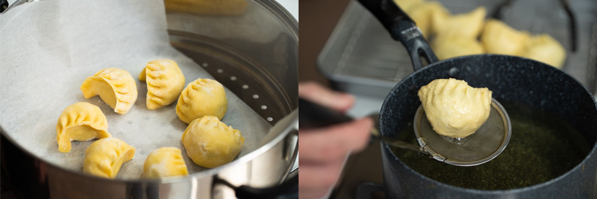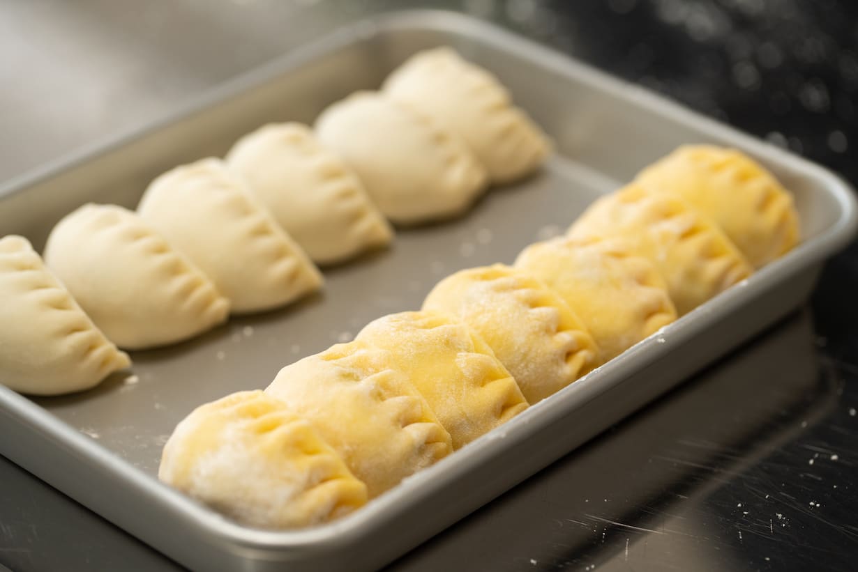タネをたっぷりと入れたヒダの小さい包み方が独特ですね。どことなく餃子(チャオズ)っぽい見た目!