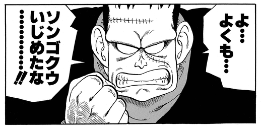 悟空をだまして背後からパワードガンで撃ったホワイト将軍に怒り心頭!