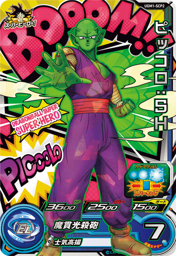 「ピッコロ:SH」は、新作映画『ドラゴンボール超 スーパーヒーロー』のピッコロさんです! 「アビリティ」と呼ばれるカードの持つ能力の名は「師匠の威厳」。「スーパードラゴンボールヒーローズ」でも、師匠としてのピッコロさんがバトルで活躍してくれます!!