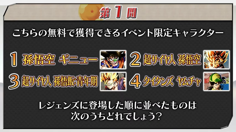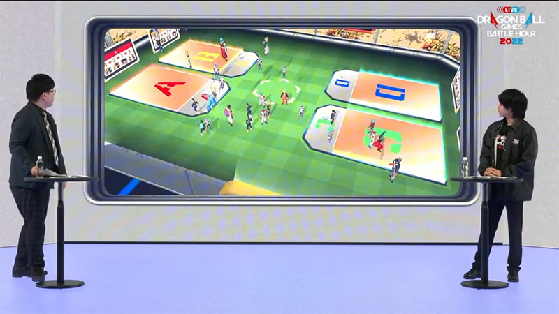 Day1最後の番組は、視聴者参加型の「ドラゴンボール レジェンズ」のクイズ大会だ!オンラインアリーナの特設会場には、A・B・C・Dと書かれた4つのエリアが用意され、参加者は正解だと思う場所に移動する。