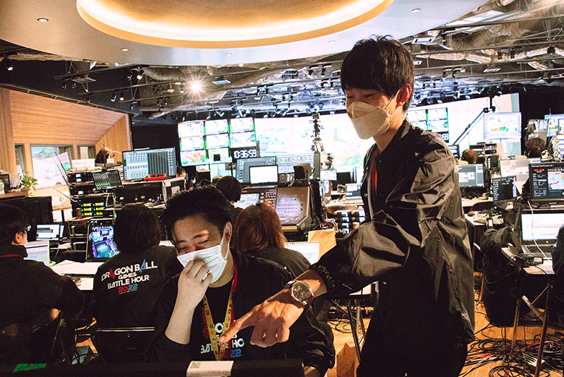 スペシャルライブが始まると、自然とモニターの前に集まり曲に聴き入る『ドラゴンボール』の歴代プロデューサーたち。