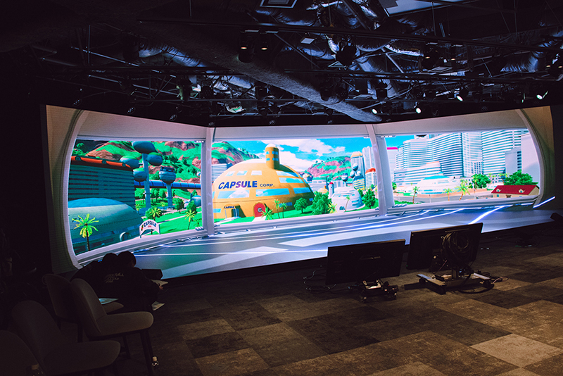 西の都が映し出された巨大な3面スクリーン。中央にはカプセルコーポレーションの建物も見える。これから始まる「DRAGON BALL Games Battle Hour 2022(以下、DBGBH2022)」のメインチャンネル「大猿アリーナ」の配信ステージだ。