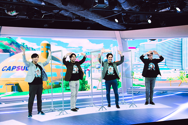 さまざまなコンテンツが配信される中、スタジオの一角ではプロデューサーたちがオンラインアリーナの参加者とプロフィールカードを交換していた。プロデューサーのアバターは、各自の特徴をとらえてデザインされた特別仕様だ。