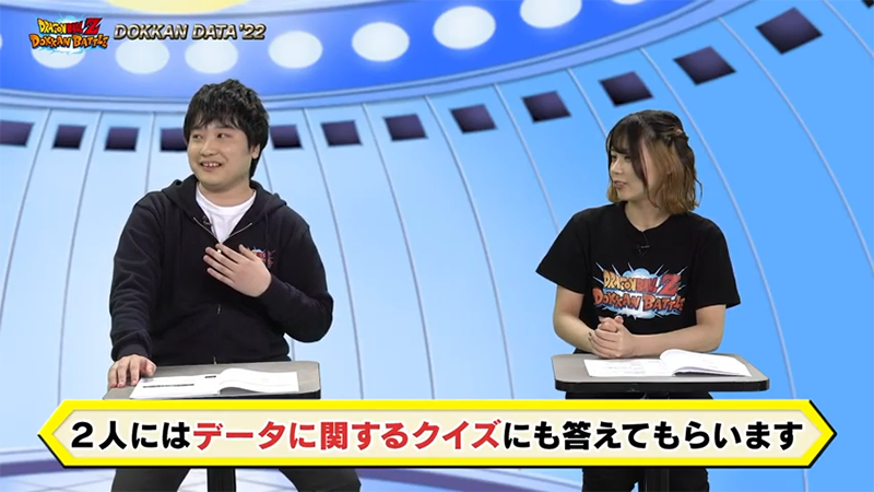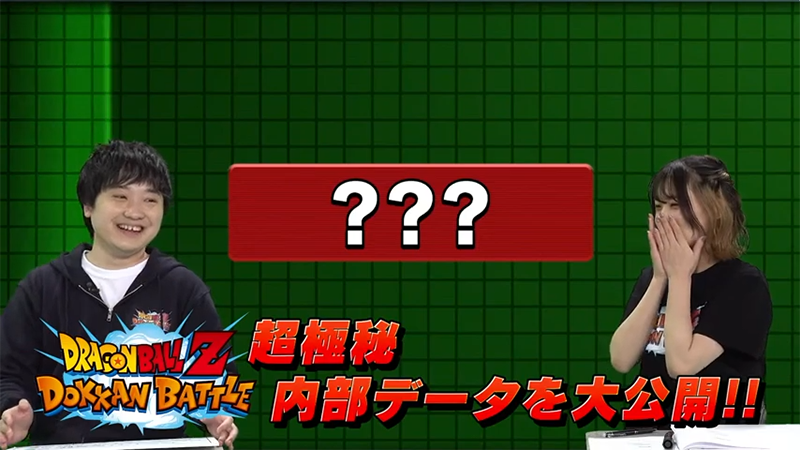 「ドラゴンボールZ ドッカンバトル」では、7年間の歴史を振り返りながら、「ACT」「RANK」「ログイン」「キャラクター」「ガシャ」という5つのカテゴリーから、開発部しか知らない超極秘内部データを大公開!国内版プロデューサーのお松と、海外版プロデューサーのKOTOが、プロデューサーの意地をかけてデータにまつわるクイズに挑戦したぞ。