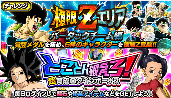 極限Zエリアの新ステージ追加や物語イベントの復刻、毎日「龍石」や修業アイテムなどを獲得できるログインボーナスやミッションなども開催中! イベントをとことん遊びつくして強くなろう!